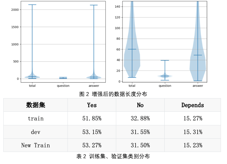 原始数据通过以上方式增强后,从中选取新的数据加入至训练集中组成新的数据集,并使新数据集的标签分布大致与原数据保持一致。通过多并一以及EDA增强时只针对较长的文本的策略在一定程度上还可以缓解训练集与测试集的文本分布不一致的问题。数据增强可以对数据进行扩充并适量引入一定的噪声,能在一定程度上提升模型的鲁棒性,有效的防止过拟合。