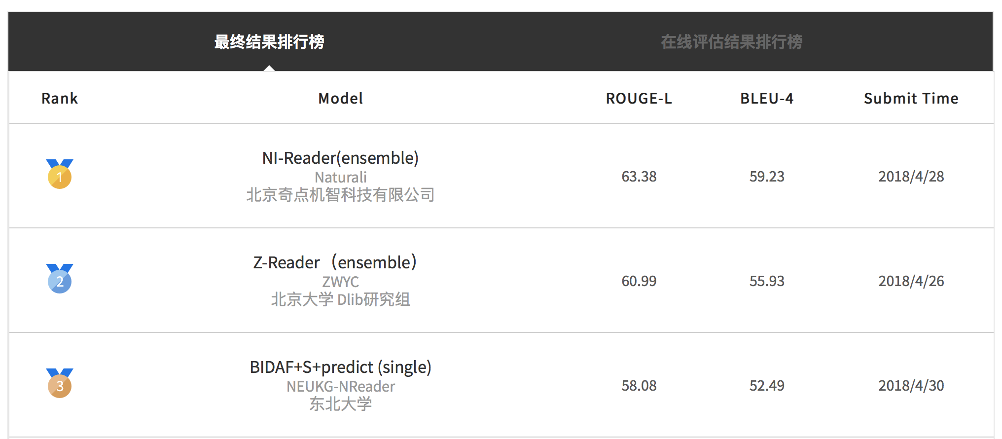 以上就是英俊小霸王最近收集整理的关于2018机器阅读理解技术竞赛,奇点机智获第一名的全部内容,更多相关2018机器阅读理解技术竞赛内容请搜索靠谱客的其他文章。