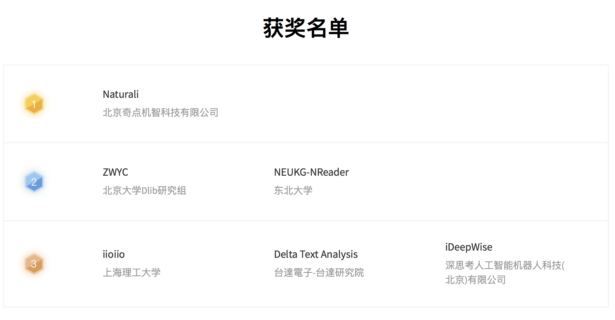 2018年5月15日,由中国中文信息学会(CIPS)、中国计算机学会(CCF)和百度联手举办的“2018机器阅读理解技术竞赛”落下帷幕。奇点机智(Naturali)从国内外800多支报名队伍中脱颖而出,占据排行榜首,荣获第一名。本次竞赛颁奖活动将于7月28日在北京召开的第三届“语言与智能高峰论坛”上举行。