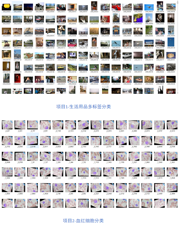 其中,项目1主要以标签转化的方式对多标签图像分类任务进行解决。项目2则以血红细胞数据集为依托,旨在讲解关于提升分类性能的相关操作。