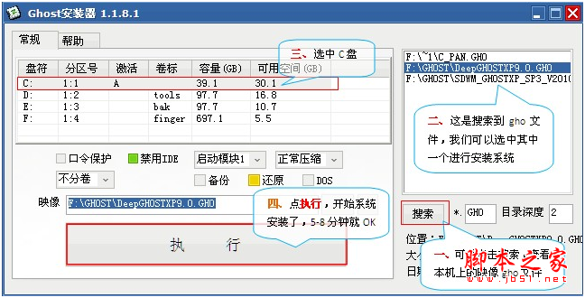 用ghost安装器安装系统只要简单的4步就可以搞定。如下,带图说明