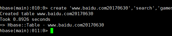 create 'www.qq.com20170630','movie','music','games' create 'www.baidu.com20170630','search','games'