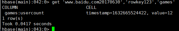 get 'www.baidu.com20170630','rowkey123','games:usercount'