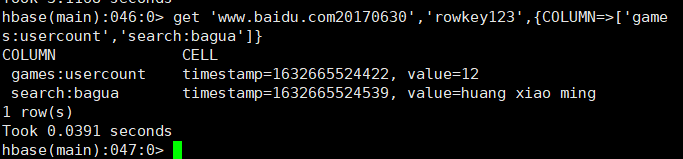 get 'www.baidu.com20170630','rowkey123',{COLUMN=>['games:usercount','search:bagua']}