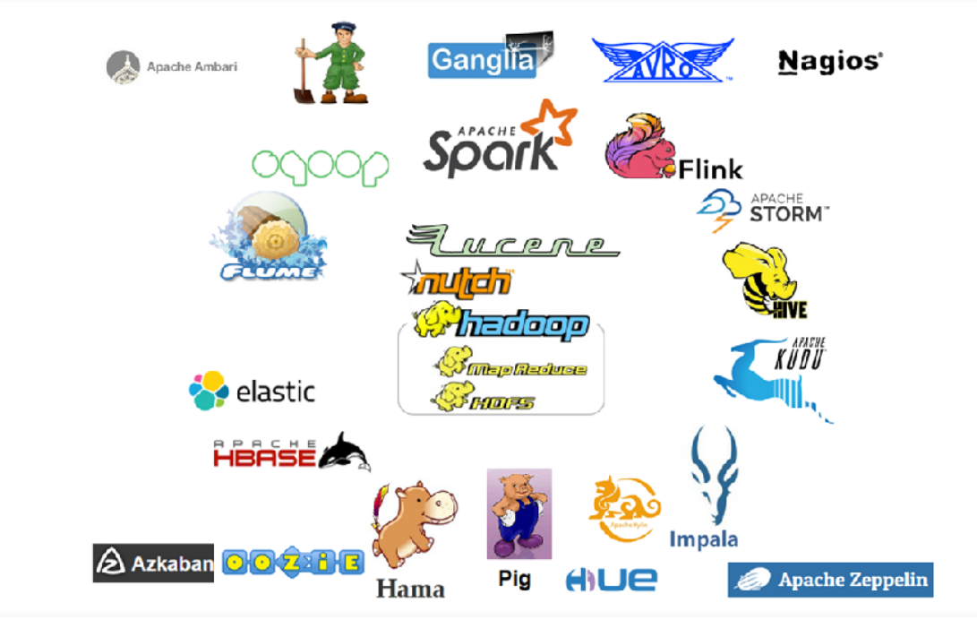 Hadoop在广义上指一个生态圈,泛指大数据技术相关的开源组件或产品,如HBase,Hive,Spark,Zookeeper,Kafka,flume…
