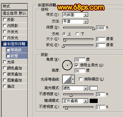 9、创建盖印图层,调出图层样式,选择斜面与浮雕,参数设置如图14,确定后把背景图层显示出来,效果如图15。