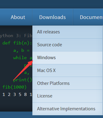 1、进入Python官网http://www.python.org,在“Downloads”下拉菜单中选择相应的操作系统,我们选择windows。
