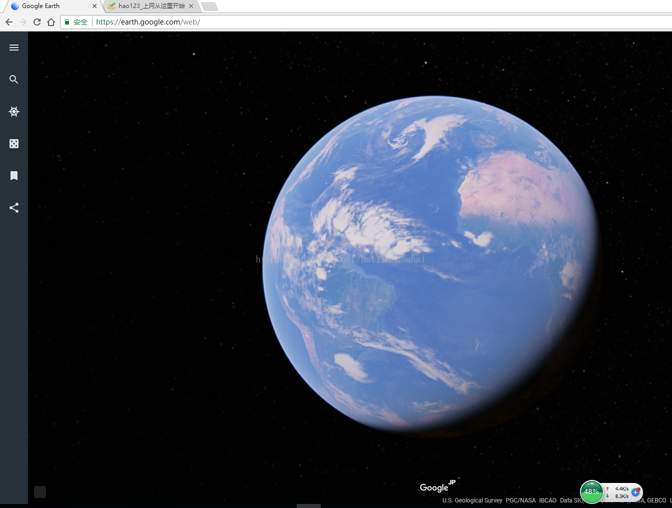 今天浏览网页,发现了googler earth的网页版,挺漂亮的。