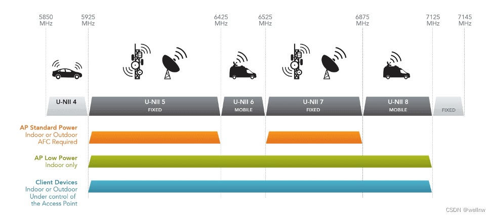 以上就是魁梧柜子最近收集整理的关于【WiFi】WiFi 6EWiFi 6E2.4G、5G、6G频普U-NII 5、U-NII 6、U-NII 7 和 U-NII 8 频段WiFI 6E AP分类的全部内容,更多相关【WiFi】WiFi内容请搜索靠谱客的其他文章。