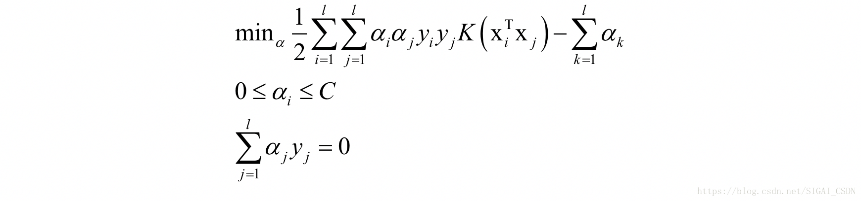 使用核函数后,支持向量机在训练时求解的对偶问题为: