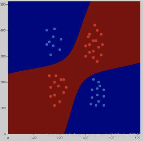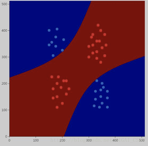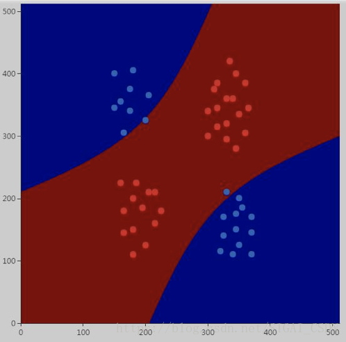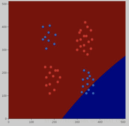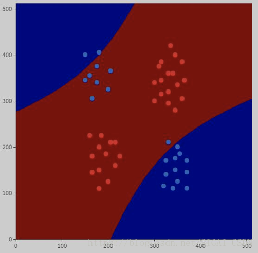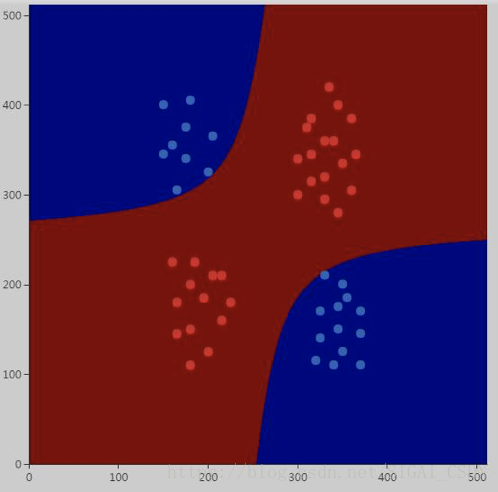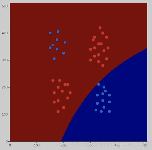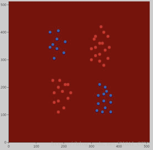 所有样本都被判定成红色。不出所料,使用线性核的SVM是无法解决异或问题的。
