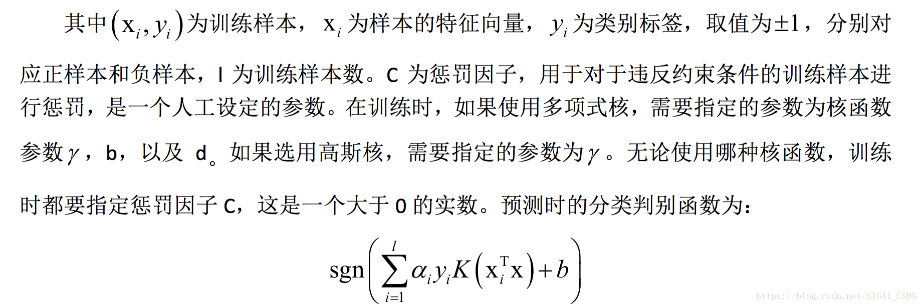 在这里K为核函数。常用的非线性核函数有多项式核,高斯核(也叫径向基函数核,RBF)。下表列出了各种核函数的计算公式: