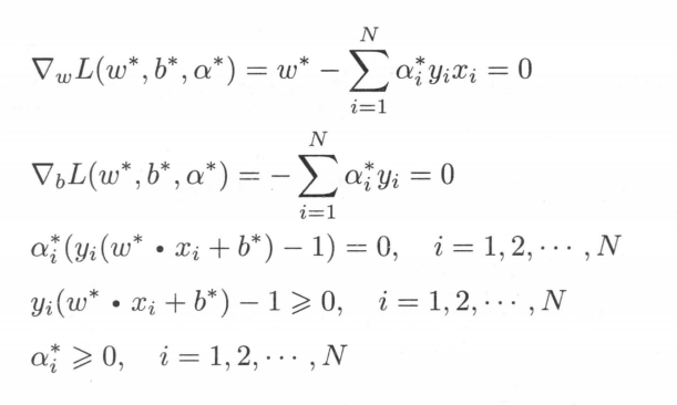 然后因为KKT条件,非拉格朗日参数的偏导为0;拉格朗日项为 0;拉格朗日乘子小于0,拉格朗日参数大于0。即;