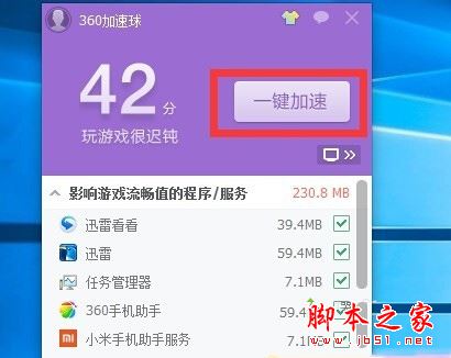 3、对于电脑安装有“360安全卫士”的用户,建议切换到“游戏模式”。点击“加速球”,并从打开的扩展面板中点击“给游戏加速”按钮;