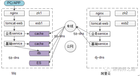 (2)缓存和数据库,仍然使用旧机房;