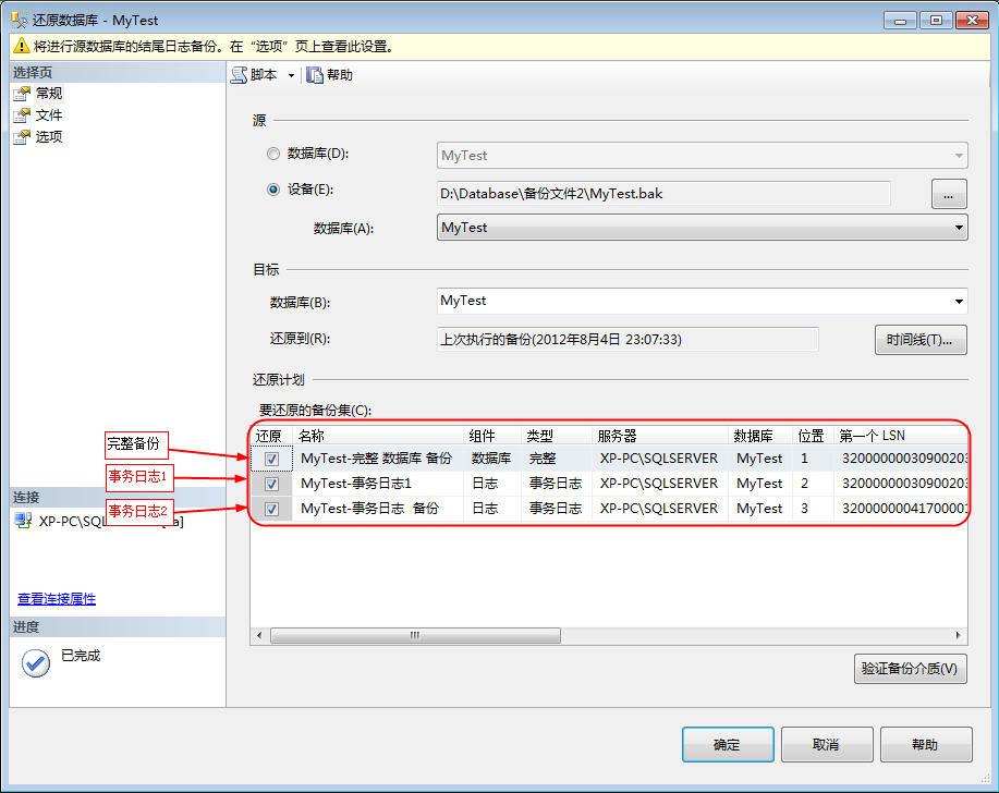 图1:备份时选择【追加到现有备份集】,还原时要还原的备份集里显示的,每次追加的备份集。