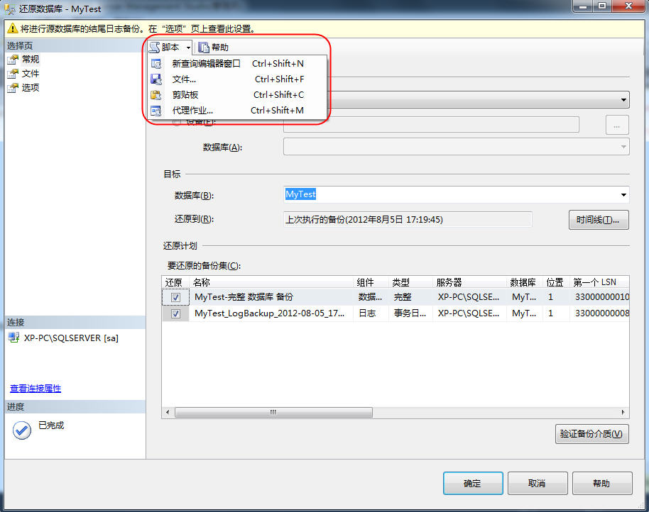 到此为止,数据库备份还原选项基本介绍完毕,有遗漏介绍的选项通过名称能直接明白。至于数据库备份还原脚本MSDN文档有语法和示例,再说也可以通过UI设置好后导出标准脚本。