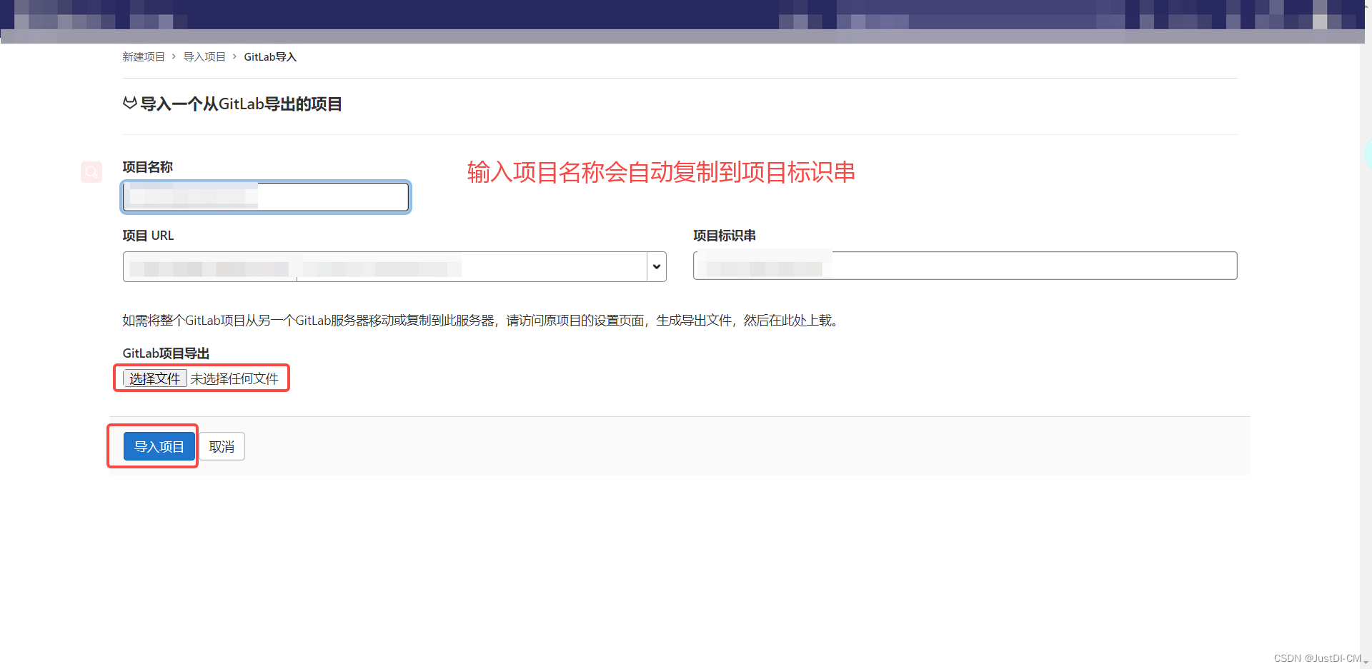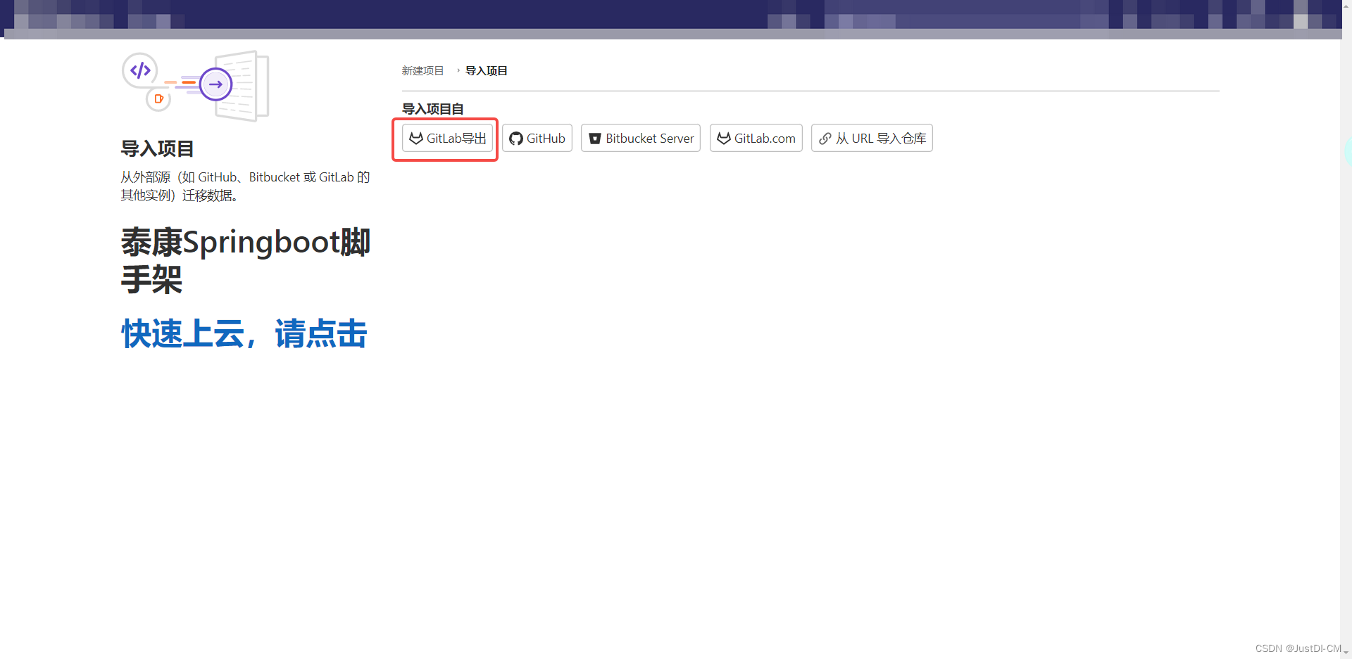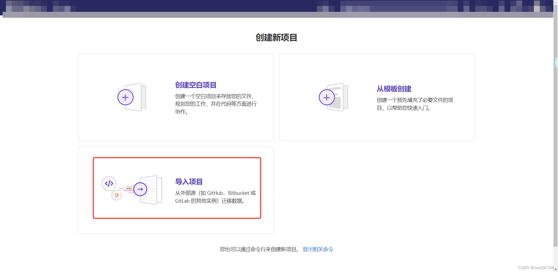 登录新 gitlab ,点击创建新项目-->导入项目