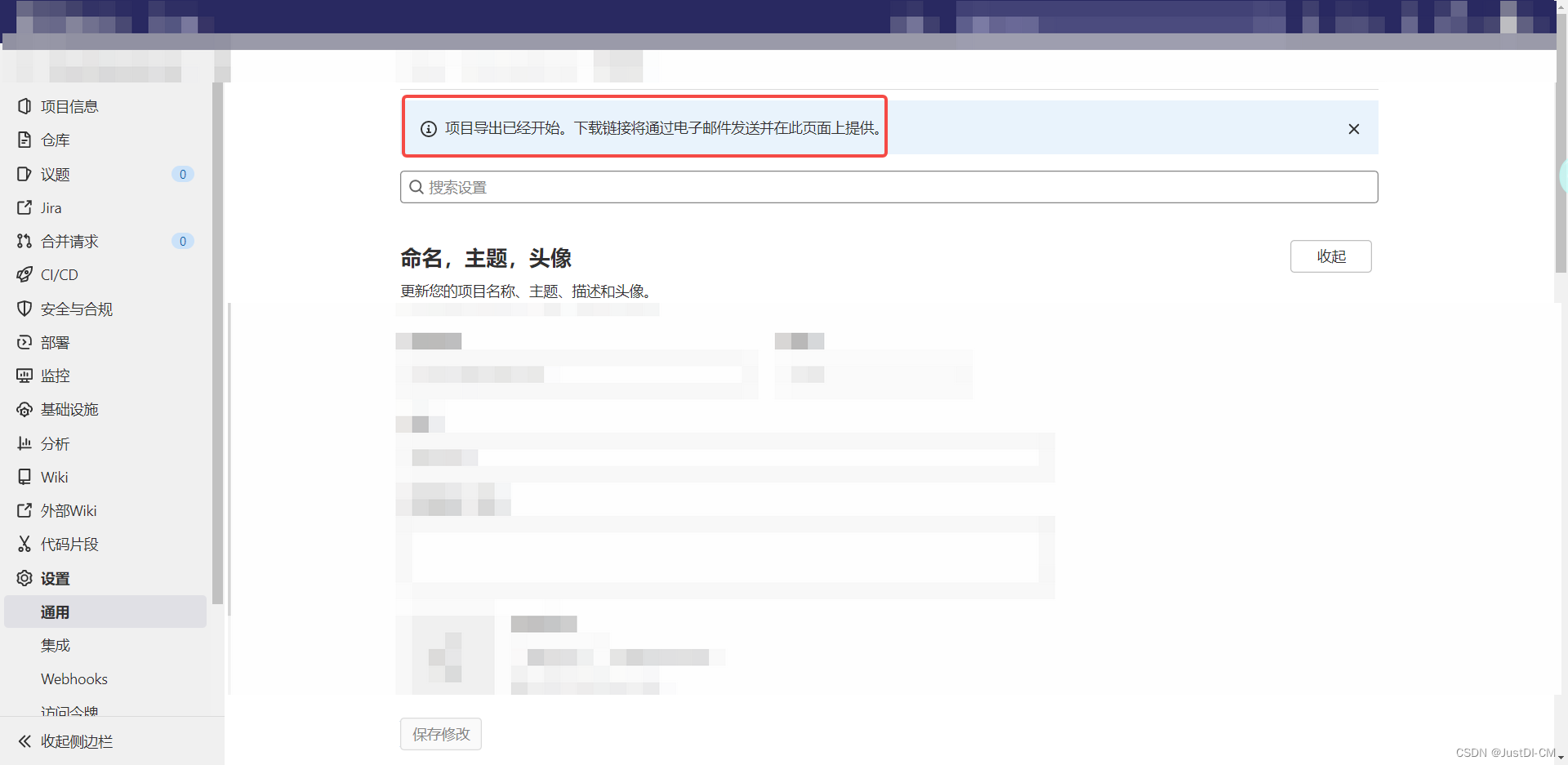 点击导出项目,会提示导出链接已经发送到了邮箱