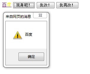<input type="button" value="我再改!" οnclick="document.getElementById('link').innerHTML='<font color=red>摆渡啦</font>'" />