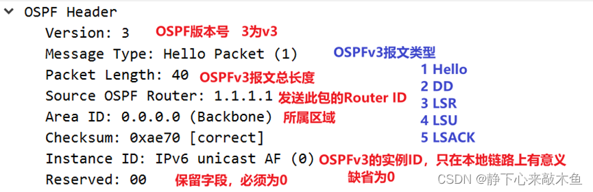 以上就是明理水蜜桃最近收集整理的关于OSPFv3报文讲解OSPFv3报文头部Hello报文LSU报文携带的LSA报文DD报文LSR报文LSACK报文的全部内容,更多相关OSPFv3报文讲解OSPFv3报文头部Hello报文LSU报文携带内容请搜索靠谱客的其他文章。