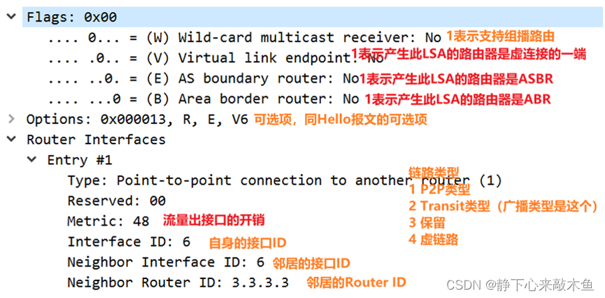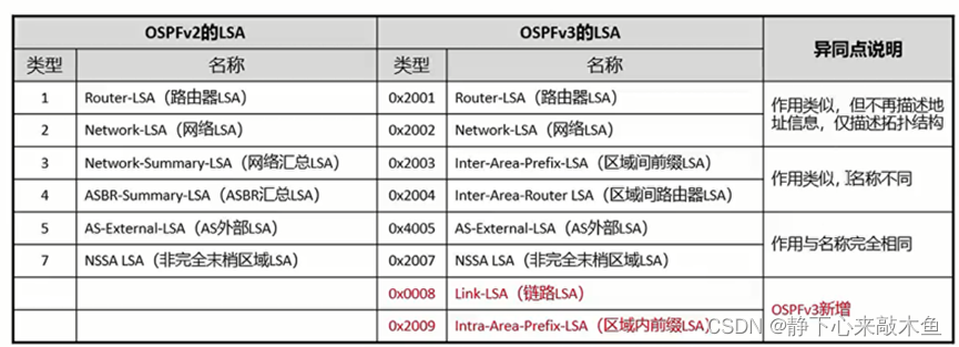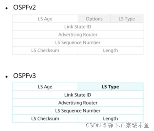 去掉了Option字段,LSA Type字段有变化,由OSPFv2的1字节扩展到2字节
