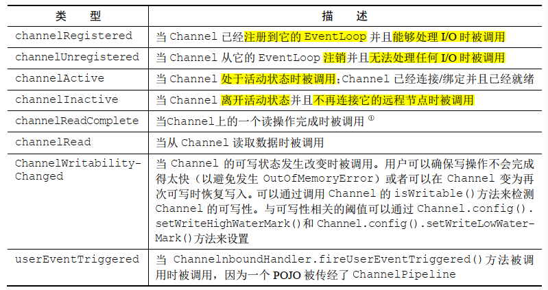 Channel的状态发生改变是,会生成相应的事件,这些事件将会转发给ChannelPipline中的ChannelHandler.