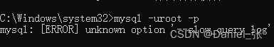 我在cmd中登录mysql,报错unknown option ‘–slow_query_log’,如下图: