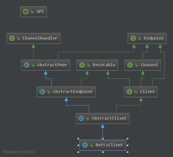 - NettyClient:继承AbstractClient,真正的客户端类,主要负责与服务端通信。