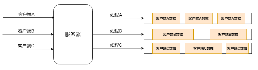 此模型中,服务端起来后,客户端连接到服务端,服务端会为每个客户端开启一个线程来进行后续的读写操作。