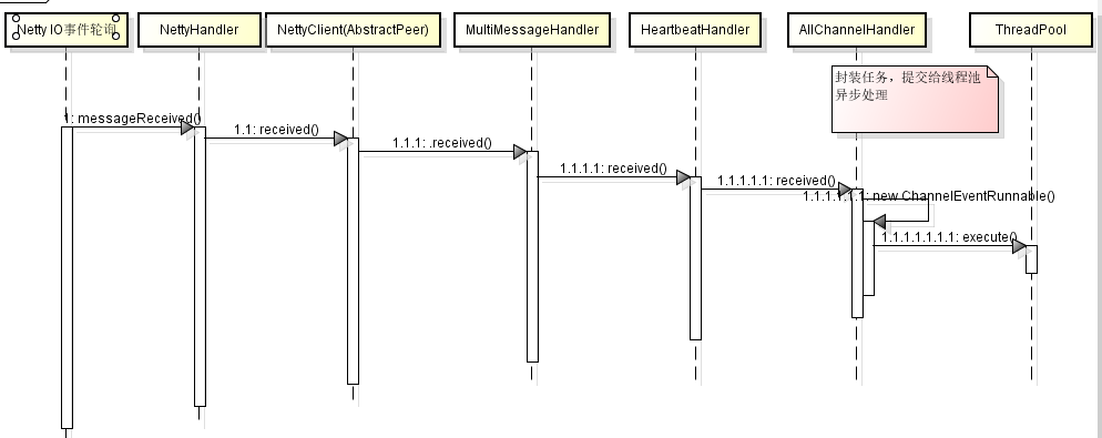 AllChannelHandler:将handler封装成task,提交到线程池执行。