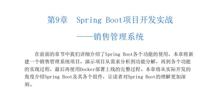 本章详细介绍使用Spring Boot开发一个销售管理系统的完整过程,涵盖系统设计、数据库设计、项目框架搭建和功能实现几个模块。