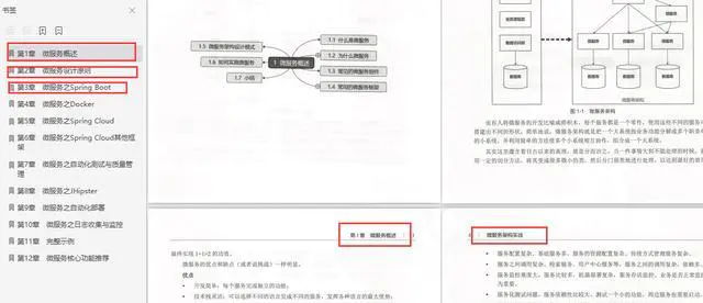 总共包含了:简介、微服务设计原则、微服务之Spring Boot、微服务之Docker、微服务之Spring Cloud、微服务之Spring Cloud其他框架、微服务之自动化测试与质量管理、微服务之JHipster、微服务之自动化部署、微服务之日志收集与监控、完整示例、微服务核心功能推荐等12个章节的知识。