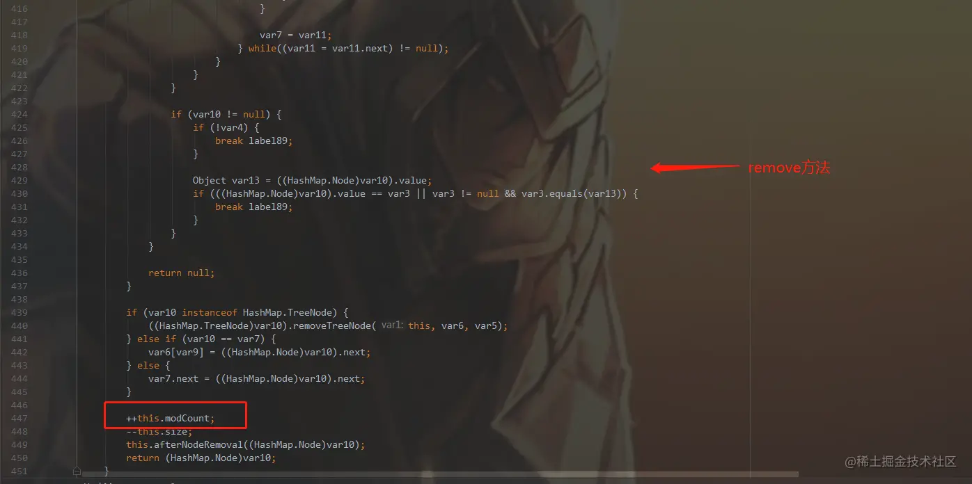 这里对modCount进行了自增操作,表示操作动作+1。再看modCount和expectedModCount是什么东西