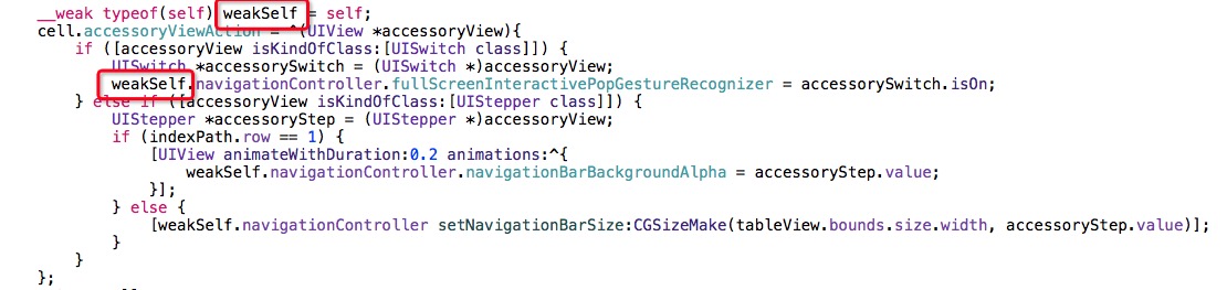 首先在下面的block代码中需要用到self,但是我们都知道block会对里面的代码变量进行strong reference,导致内存泄漏。