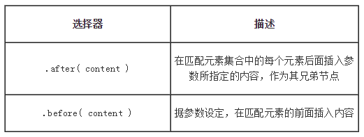 - before与after都是用来对相对选中元素外部增加相邻的兄弟节点