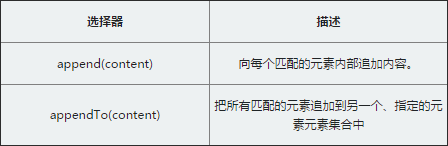 - appendTo()把所有匹配的元素追加到另一个指定元素的集合中
