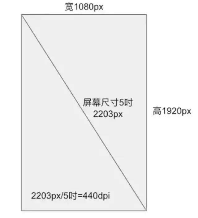 举例说明:屏幕分辨率为:1920*1080,屏幕尺寸为5吋的话,那么dpi为440: