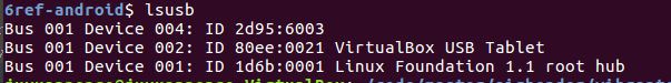 1.使用 lsusb 找到对应的设备ID,有些手机没有明显提示,可以通过插拔数据线对比出现的id号: