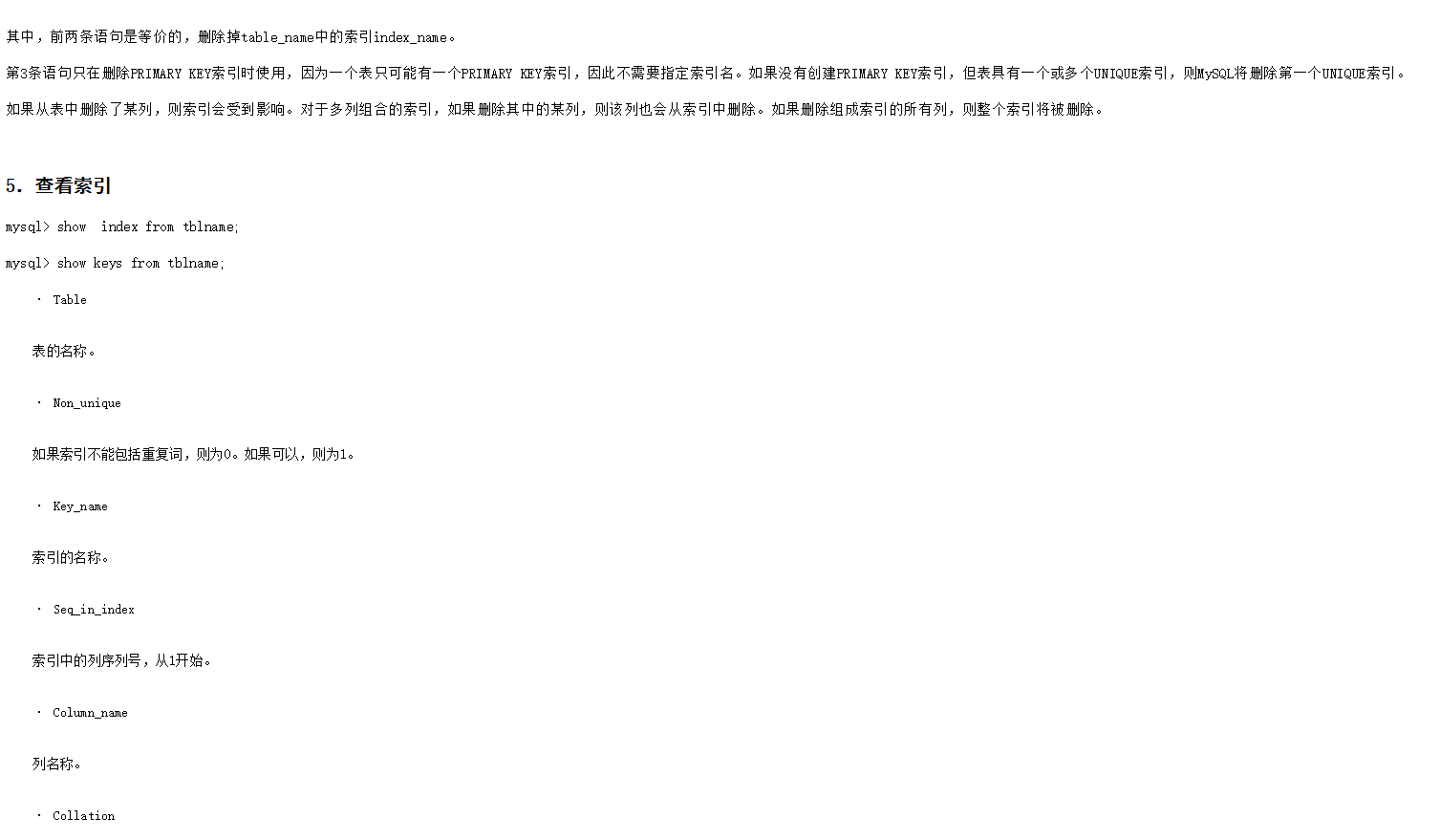 INDEX(普通索引)