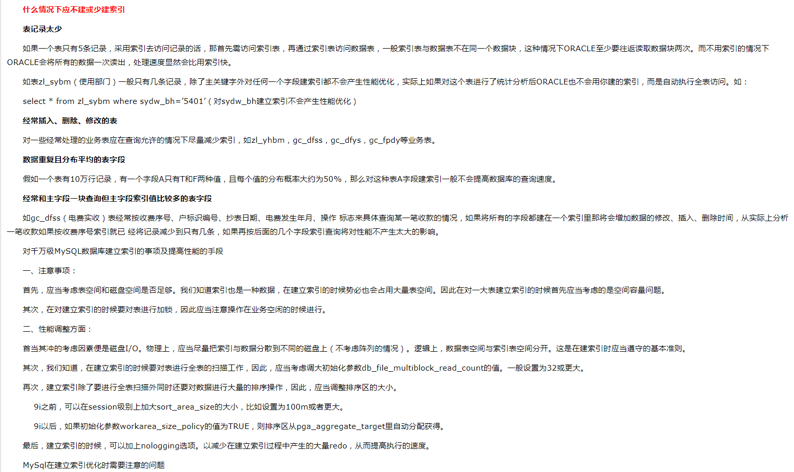 1.NULL值判断:因为使用NULL值判断的话,则不会使用字段中的索引。