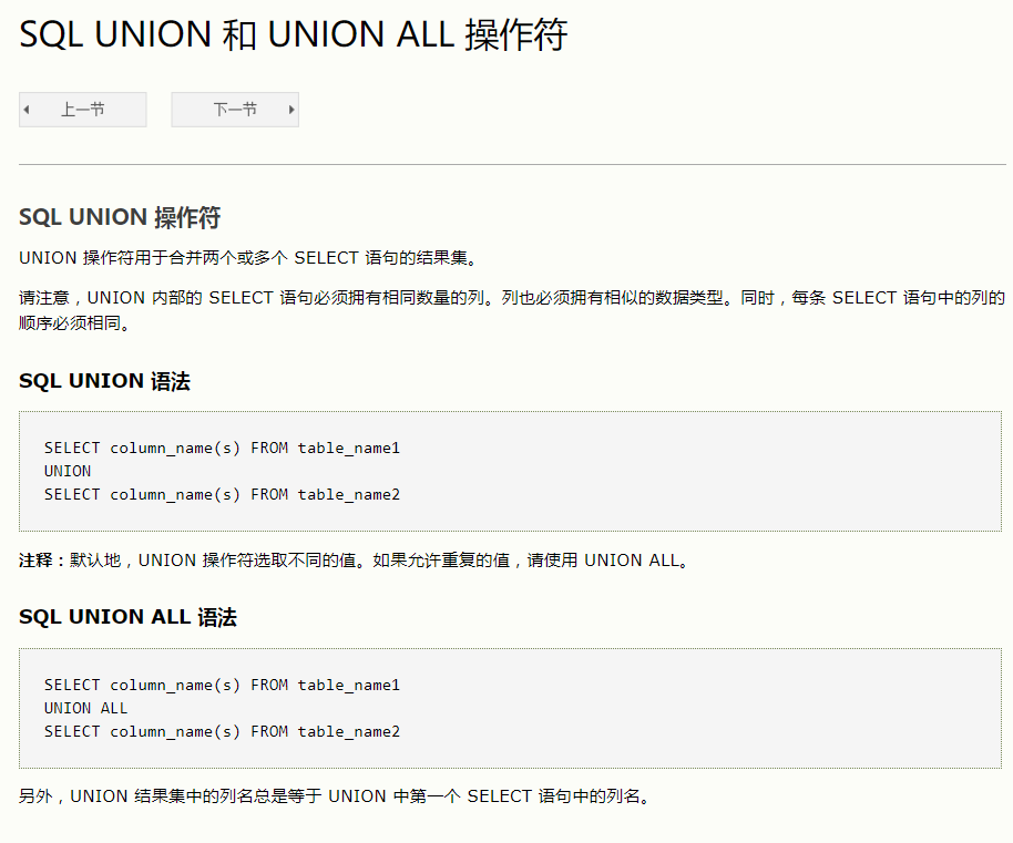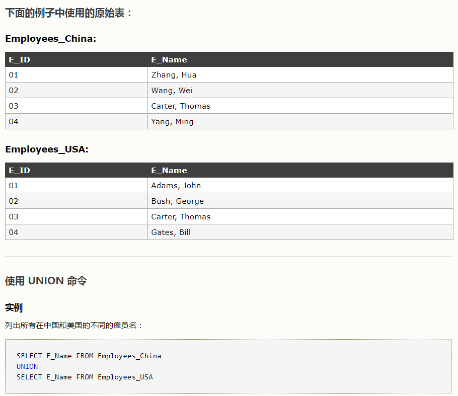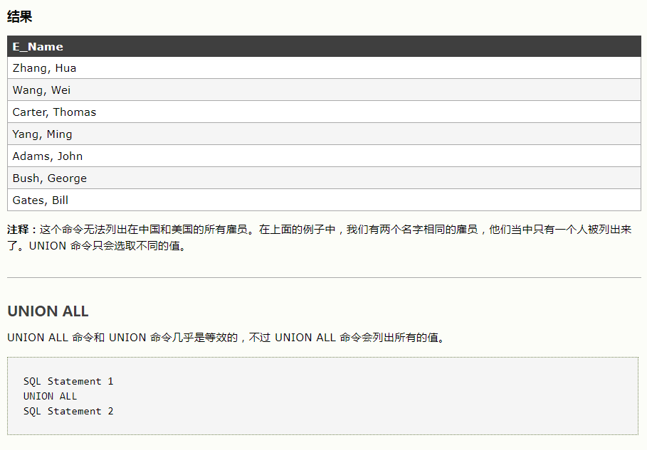 SQL UNION 和 UNION ALL 操作符