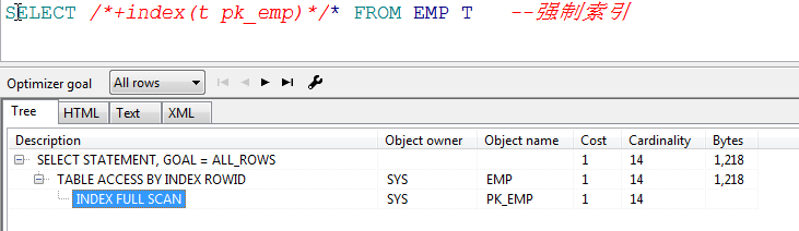 SELECT /*+index(t pk_emp)*/* FROM EMP T