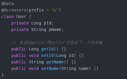 3、prefix:前缀,用于生成getter和setter方法的字段名会忽视指定前缀(遵守驼峰命名)