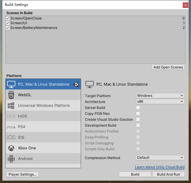 在Build Steings中将场景添加进去就可。