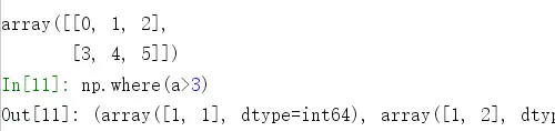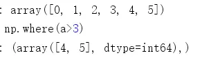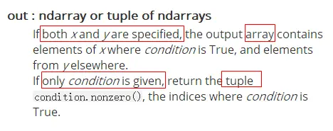 numpy.where(condition[, x, y])。一般使用时,返回的时tuple