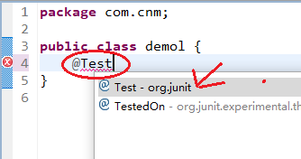 6.开始完成代码部分,首先创建一个demol的类文件,@Test就是需要导入刚刚的JUnit的包文件!