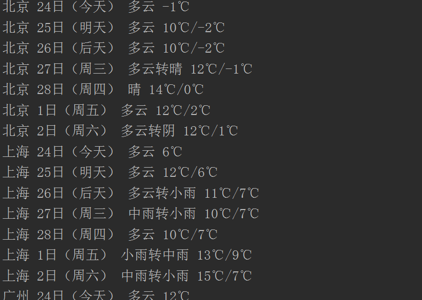 以上就是朴实花瓣最近收集整理的关于简单的爬取中国天气网某个城市七天的天气预报数据的全部内容,更多相关简单内容请搜索靠谱客的其他文章。
