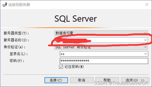 4.打开Microsoft SQL Sever 连接界面 SQLsever 身份验证连接