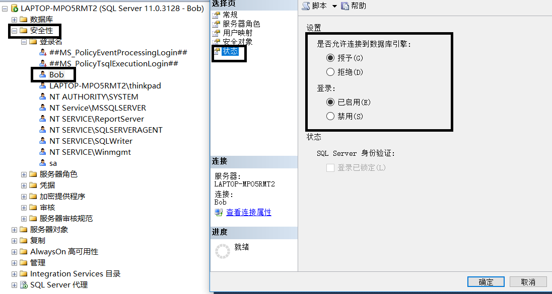 使用python程序访问SQL Server 2012有本地连接和远程连接两种方式。使用本地连接时,您登陆数据库时应该采用“window 身份验证”,而使用远程连接时,应该采用“SQL Server 身份验证”方式登陆数据库。python程序作为客户端,SQL Server数据库作为服务器,你可以在登陆时设置您的服务器名。在使用远程连接方式时,最好关闭防火墙或者允许该python通过防火墙。具体的操作请看图3: